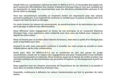 GOX YU BEES/A-N-T-A Soutient Bassirou Diomaye Faye pour les Présidentielles Sénégalaises : Un Appel à la Souveraineté et à la Justice